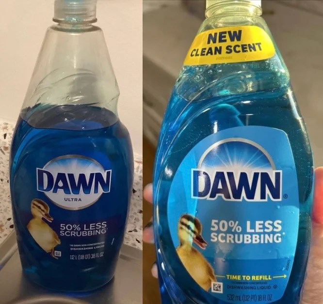 Forward_Ride530 also pointed out what to look for when you go to panic-purchase Dawn Original Scent. The old bottles have a full circle logo, while the new ones have a half circle logo and there is a yellow sticker exclaiming “NEW CLEAN SCENT.” And what the hell is a “clean scent” anyway? Shouldn’t clean be the absence of odor? Why do people equate “clean” with overwhelming artificial fragrances? I’m living in the Febreze Era, and I hate it!